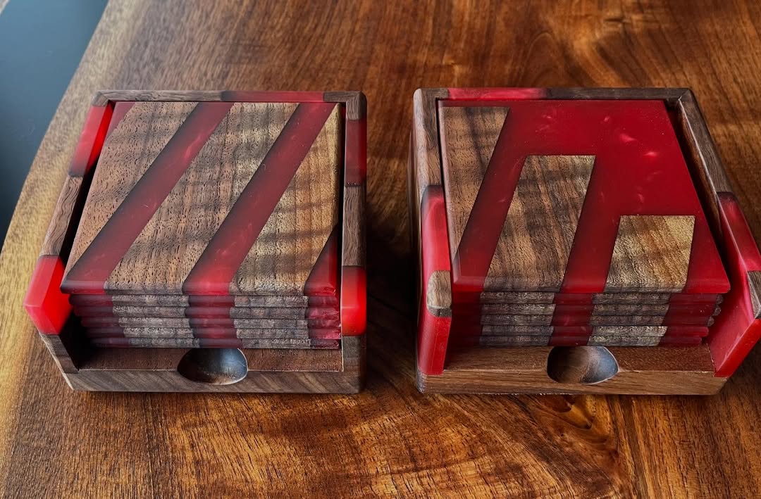 ClientMattDateJune 2025ShareTwitter-newFacebookShare-emailCopy URL to clipboard These sister-sets came out even better than anticipated🤩. Things just kept (literally) lining up.😎 Black walnut & red pigmented epoxy with a dash of mahogany mica powder to get the signature swirl.
